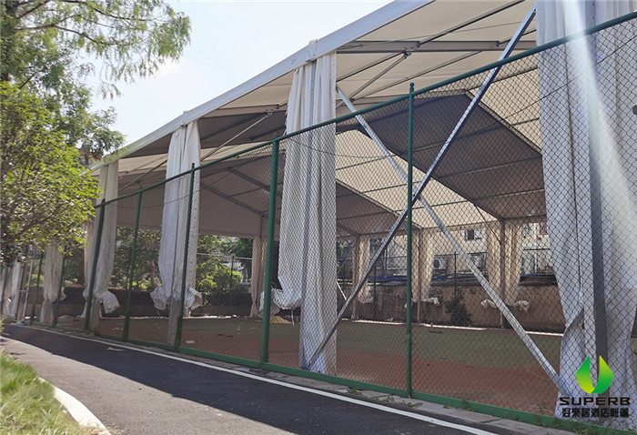 籃球場篷房的搭建需要考慮到多個要素,包括篷房面積、高度、類型、結(jié)構(gòu)框架、篷布類型等方面。在篷房結(jié)構(gòu)材料的選擇中也需要考慮到其結(jié)構(gòu)的穩(wěn)定性,同時需要注意篷房的防水性能。