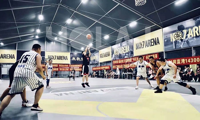 好來居篷房為籃球館提供定制解決方案,可以根據(jù)籃球場(chǎng)尺寸進(jìn)行定制,長(zhǎng)度按每5米遞增不設(shè)限制。你可以根據(jù)自己的想法進(jìn)行建造,內(nèi)部可以容納一個(gè)或多個(gè)標(biāo)準(zhǔn)尺寸的籃球場(chǎng)。